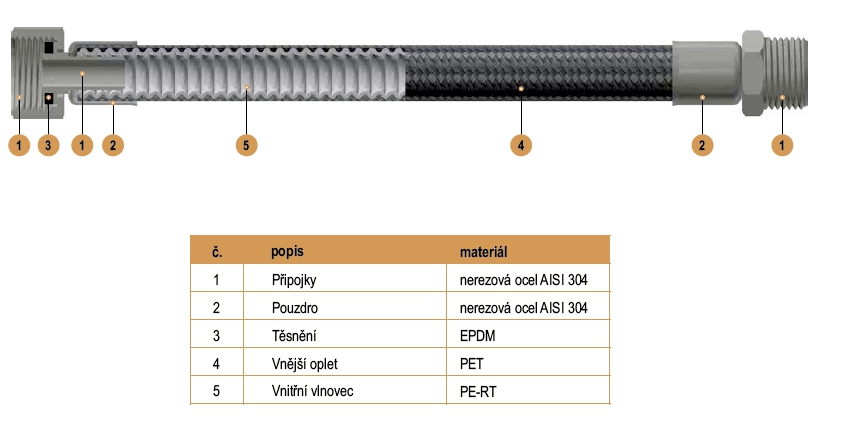 - Toto použití je možné díky vnitřního jádra z PE-RT a přípojkám z nerezové oceli, které splňují požadavky směrnice Evropského parlamentu a Rady (EU) 2020/ 2184 z 16.12.2020 o kvalitě vody určené pro lidskou spotřebu.