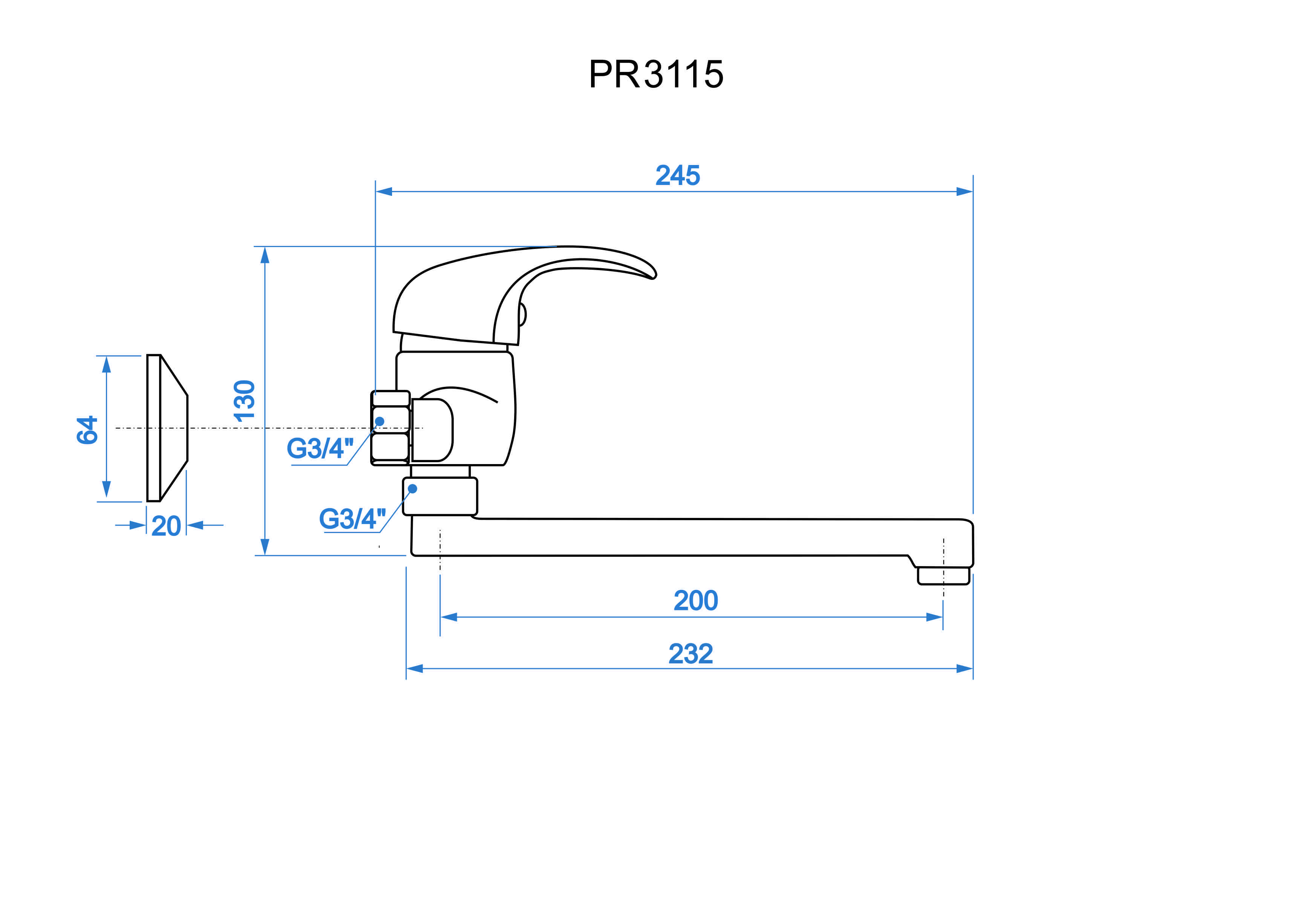 dřezová stěnová baterie PERLA - rozteč 150 mm