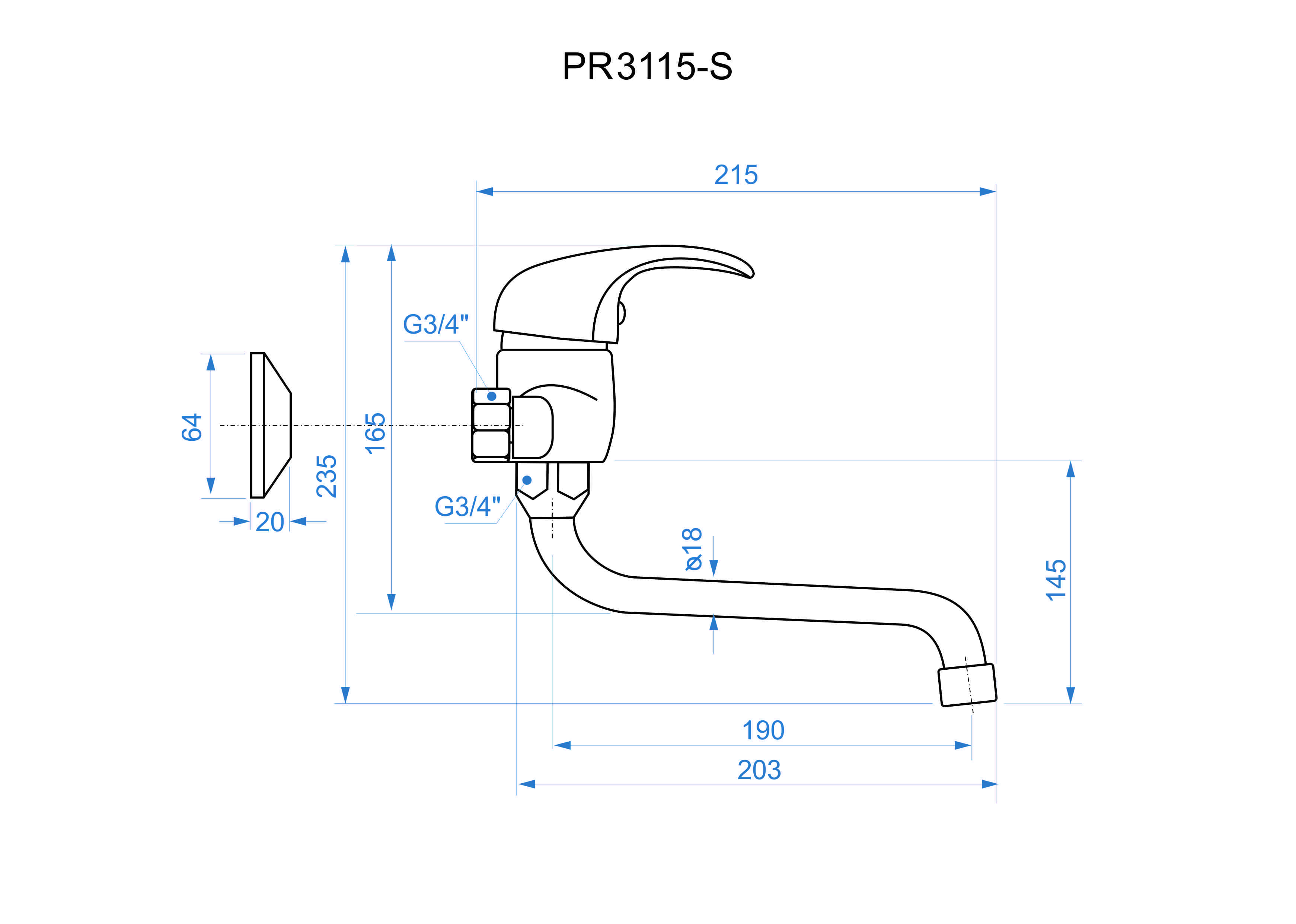 dřezová stěnová baterie PERLA s ramínkem "S" - rozteč 150 mm