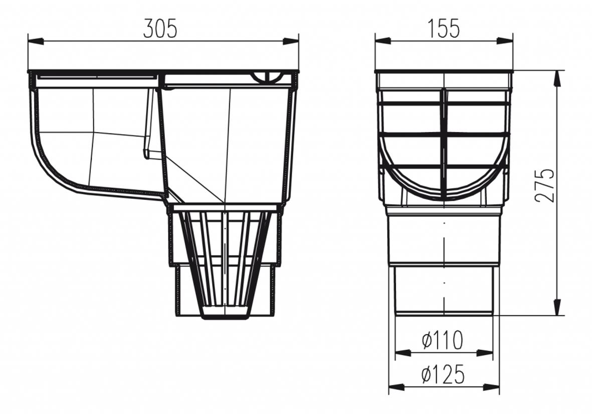 Výrobek je určen pro odvod dešťových (povrchových) vod do kanalizačních systémů vně budov a umožňuje připojení okapových svodů. Obsahuje suchou protizápachovou klapku zabraňující zpětnému zápachu z kanalizačního potrubí. Výrobek má kombinovaný odtok D 110/125 mm. Excentrické víko svodu u provedení STANDARD je určeno pro vyříznutí požadovaných průměrů 75, 80, 90, 100, 110, 125 mm.