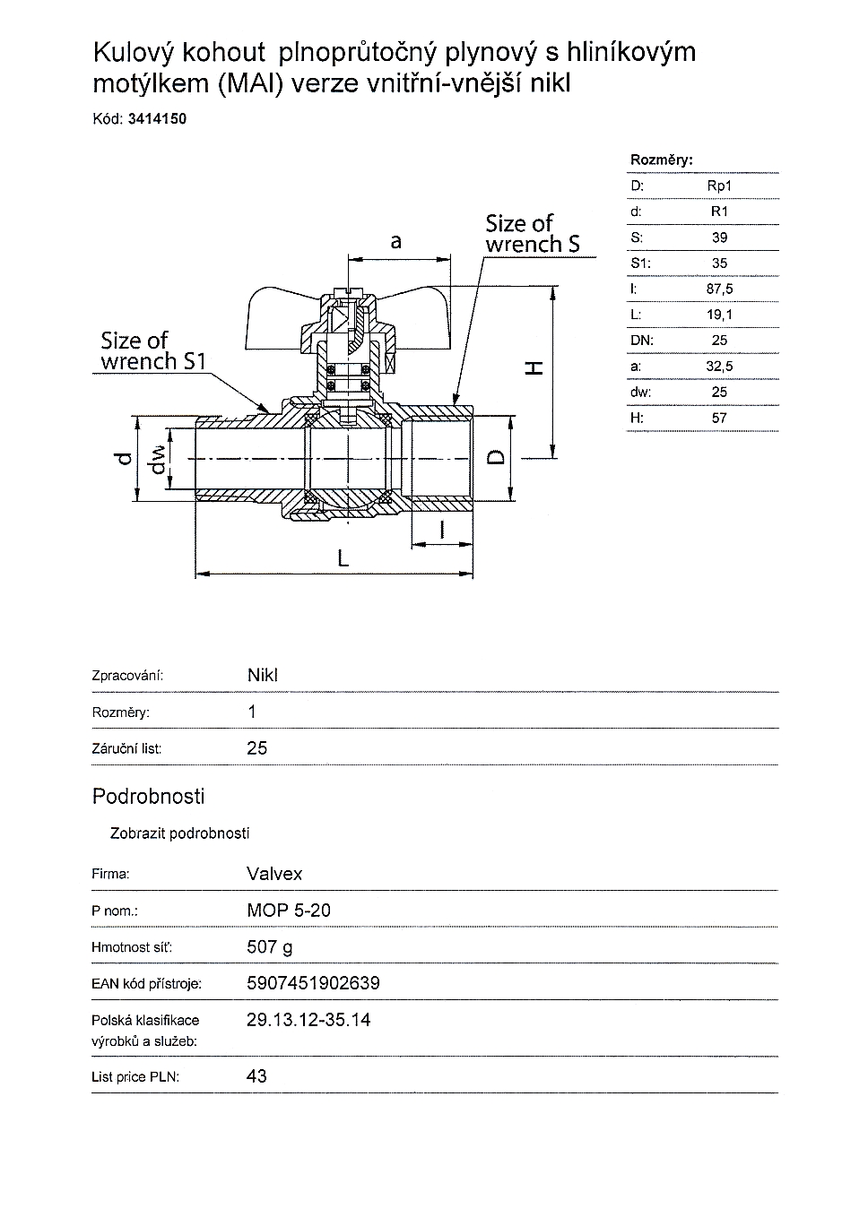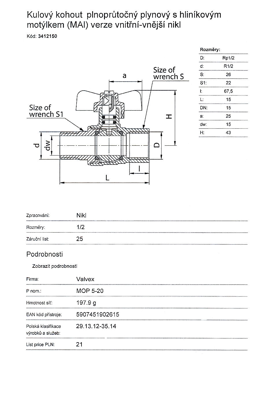 | výrobce | VALVEX |