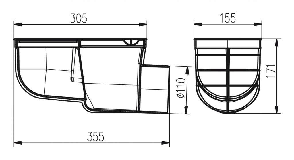 lapač povrchových a střešních vod - boční D 110