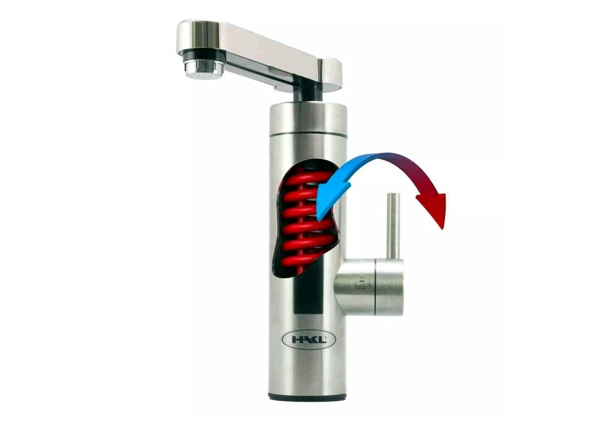 Elektrická přímotopná baterie IconicLine HAKL OB 340 spustí ohřev otočením páky (na červený symbol). Nastavení požadované teplé vody je možné přidáváním nebo ubíráním průtoku vody a to změnou polohy rukojeti páky. Přímotopná baterie je jednoduchým řešením při obvyklých Problémech s montáží, například při omezeném prostoru, s přetíženou elektroinstalací atp. Kvalitu výrobku podtrhuje také tepelná ochrana proti přepálení topné spirály a otočné výtokové ramínko.