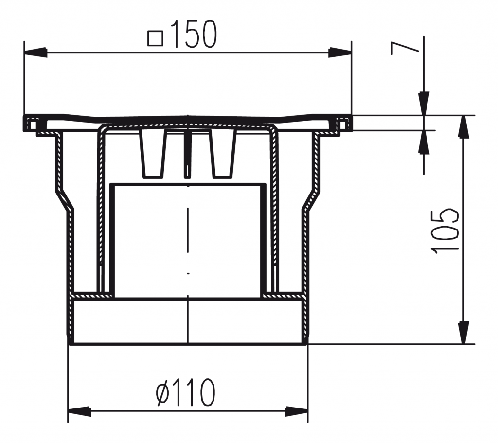 Podlahová vpusť spodní D110 s vodní hladinou (vodní zápachovou uzávěrou) a plastovou mřížkou je určena pro vnitřní použití do technických prostor, koupelen apod.