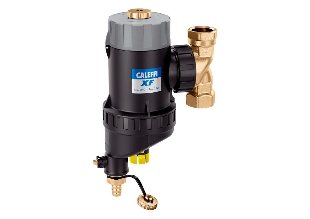 CALEFFI, 577500, CALEFFI XF. Poloautomatický samočisticí magnetický filtr pro tepelná čerpadla. Nastavitelný pro vodorovné a svislé potrubí. Vypouštěcí kohout s hadičníkem.