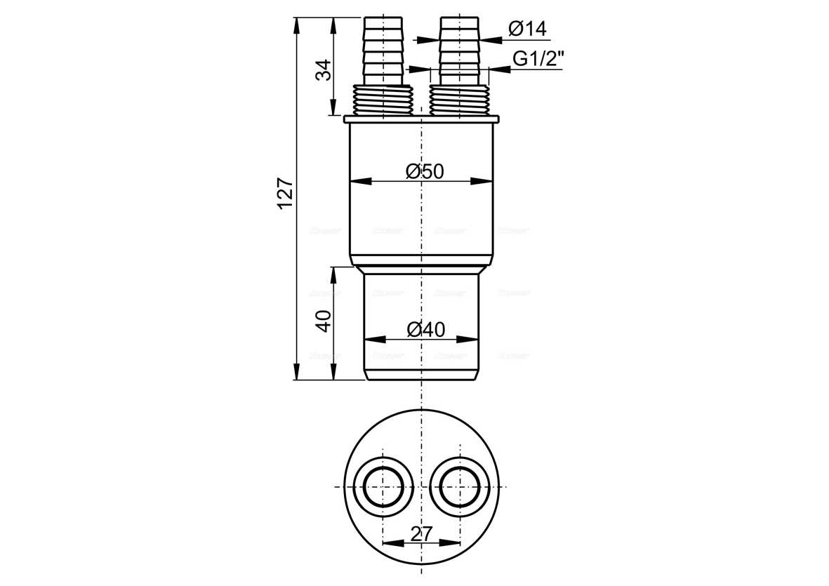 Lze napojit na Ø40 mm nebo Ø50 mm odpad