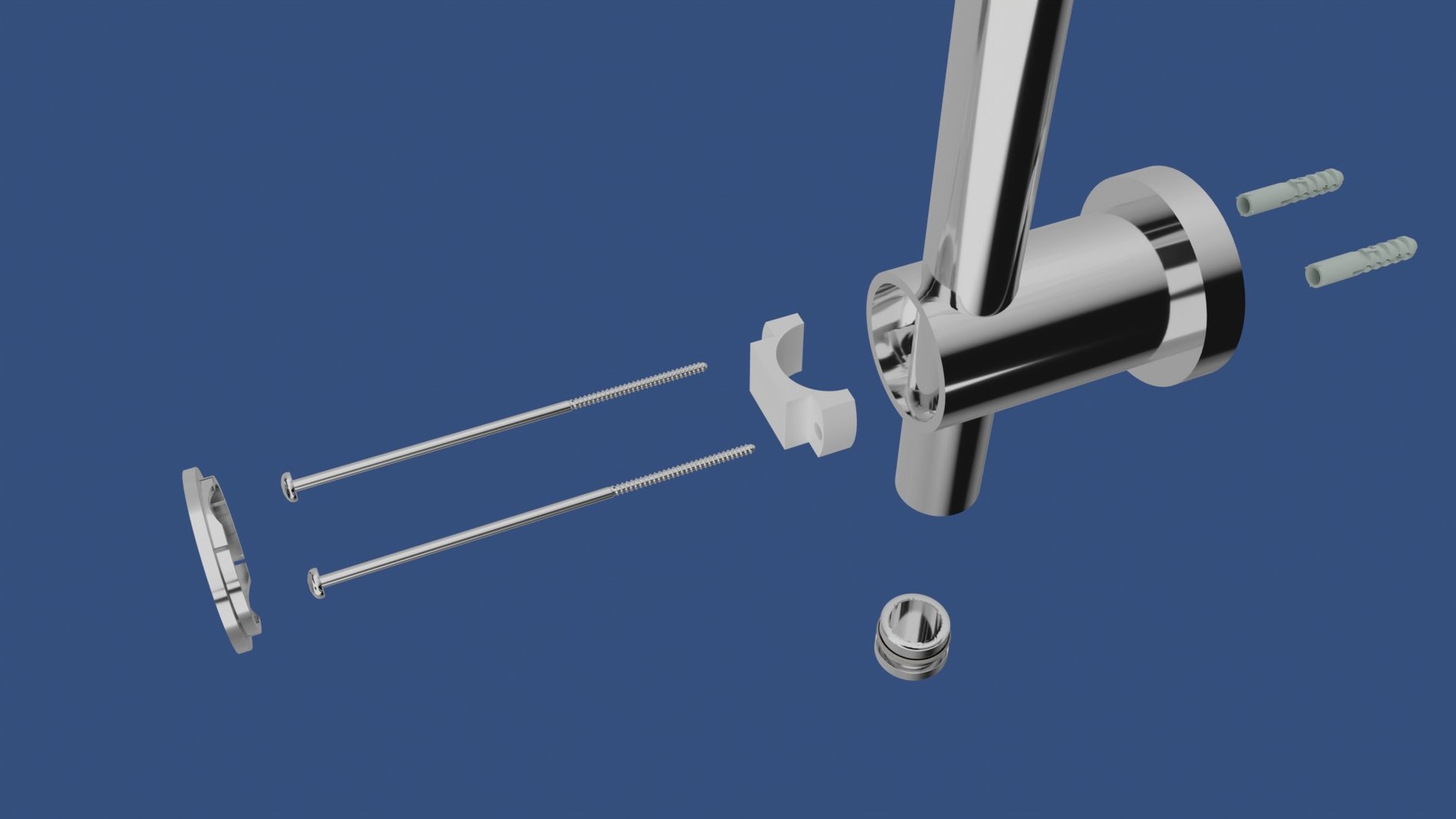 - oba úchyty na zeď, jsou nastavitelné (pojízdné) po celé délce tyče