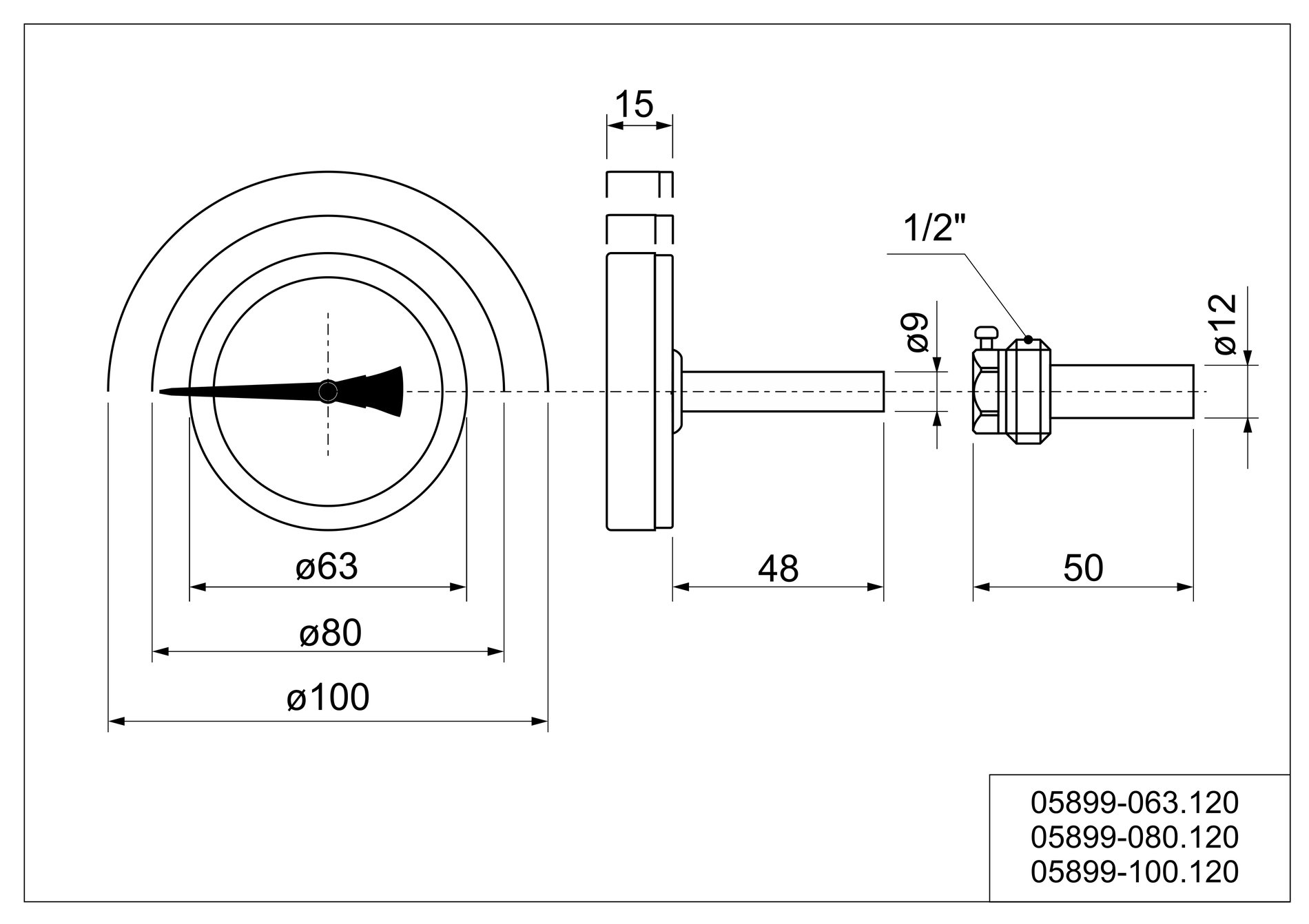 teploměr ze zadním napojením a jímkou