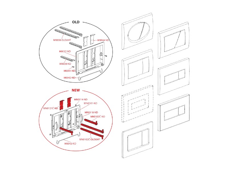 OVLÁDACÍ TLAČÍTKO PRO PŘEDSTĚNOVÉ INSTALAČNÍ SYSTÉMY, BÍLÁ