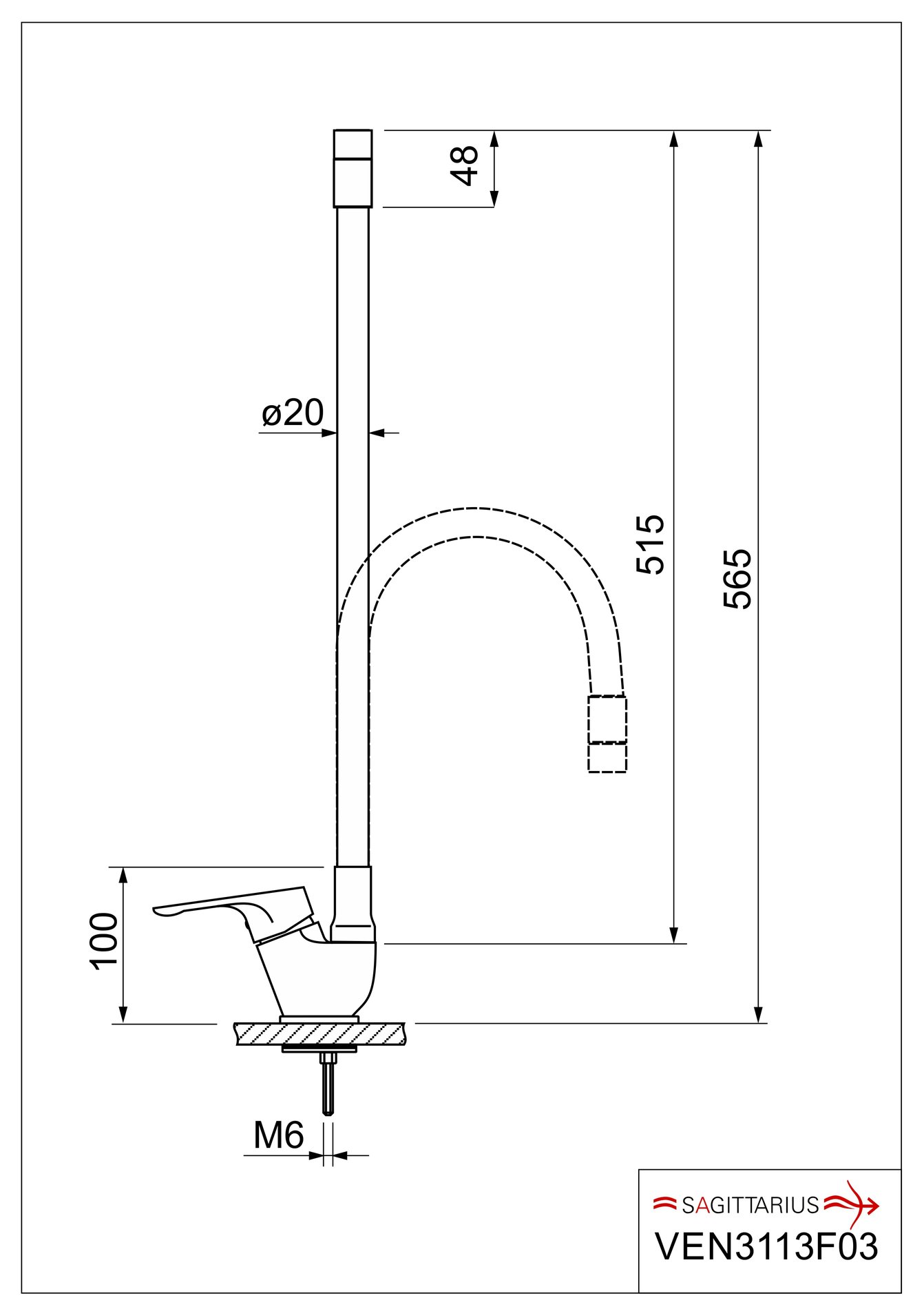 Dřezová stojánková vodovodní baterie s flexibilním (tvarovatelným) výtokovým ramínkem nabízí možnost "natvarovat" výtokové ramínko do co nejúčelnější polohy. Ramínko baterie je plně otočné (360°) |