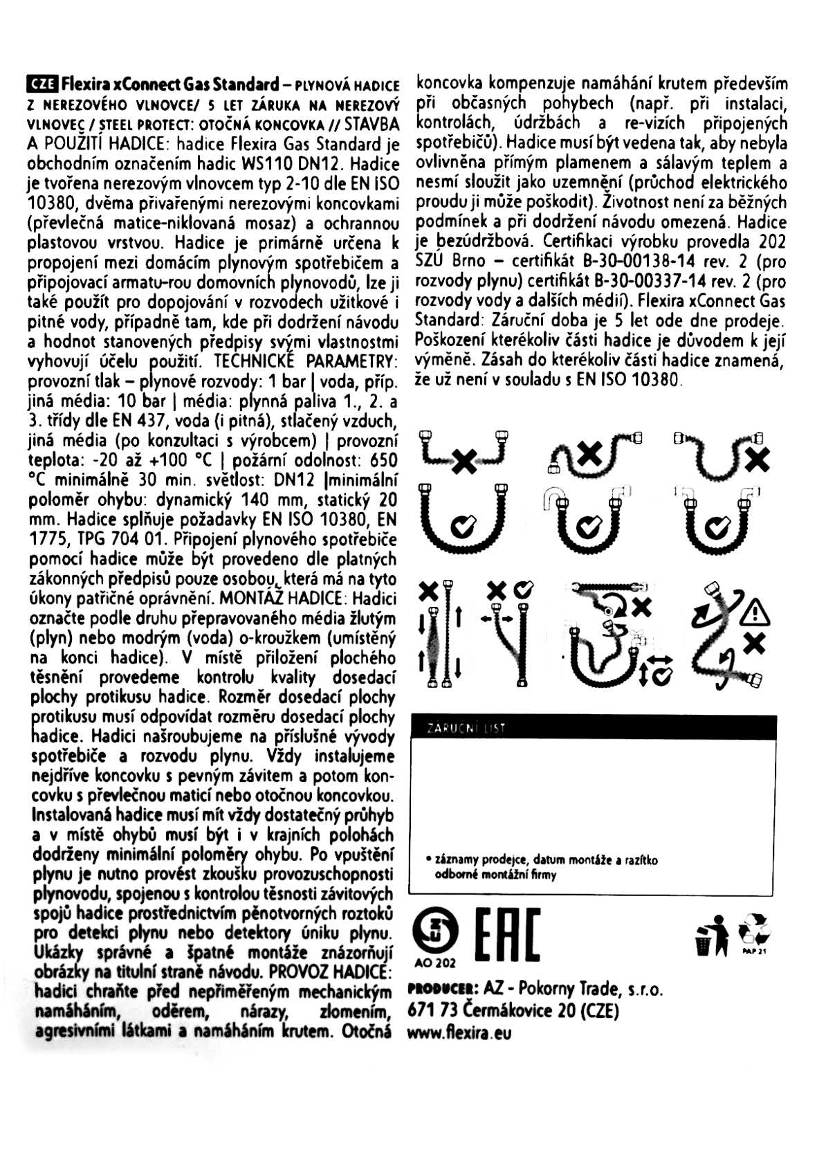 | hadice splňují požadavky normy | ČSN EN 10380 |
