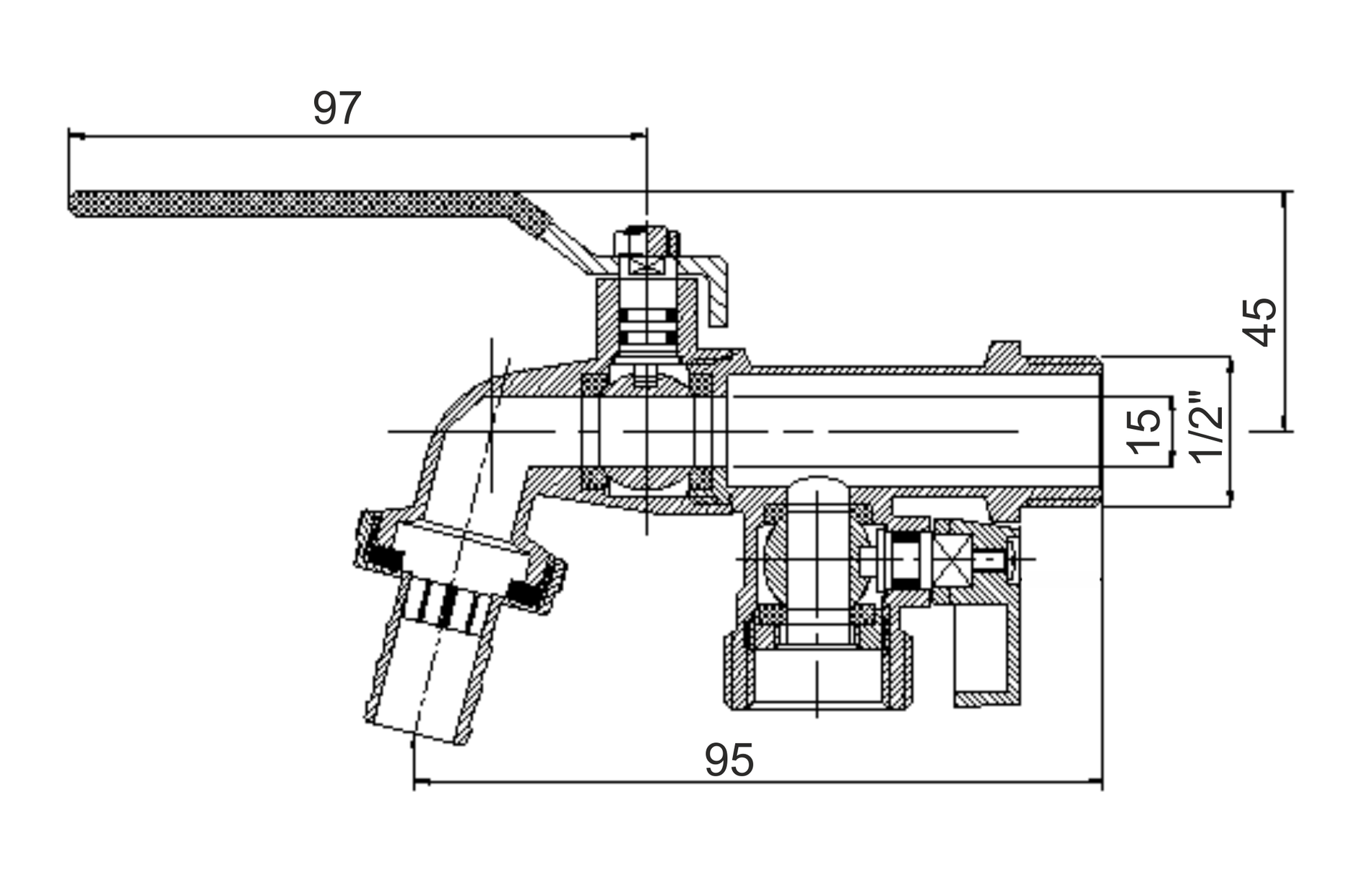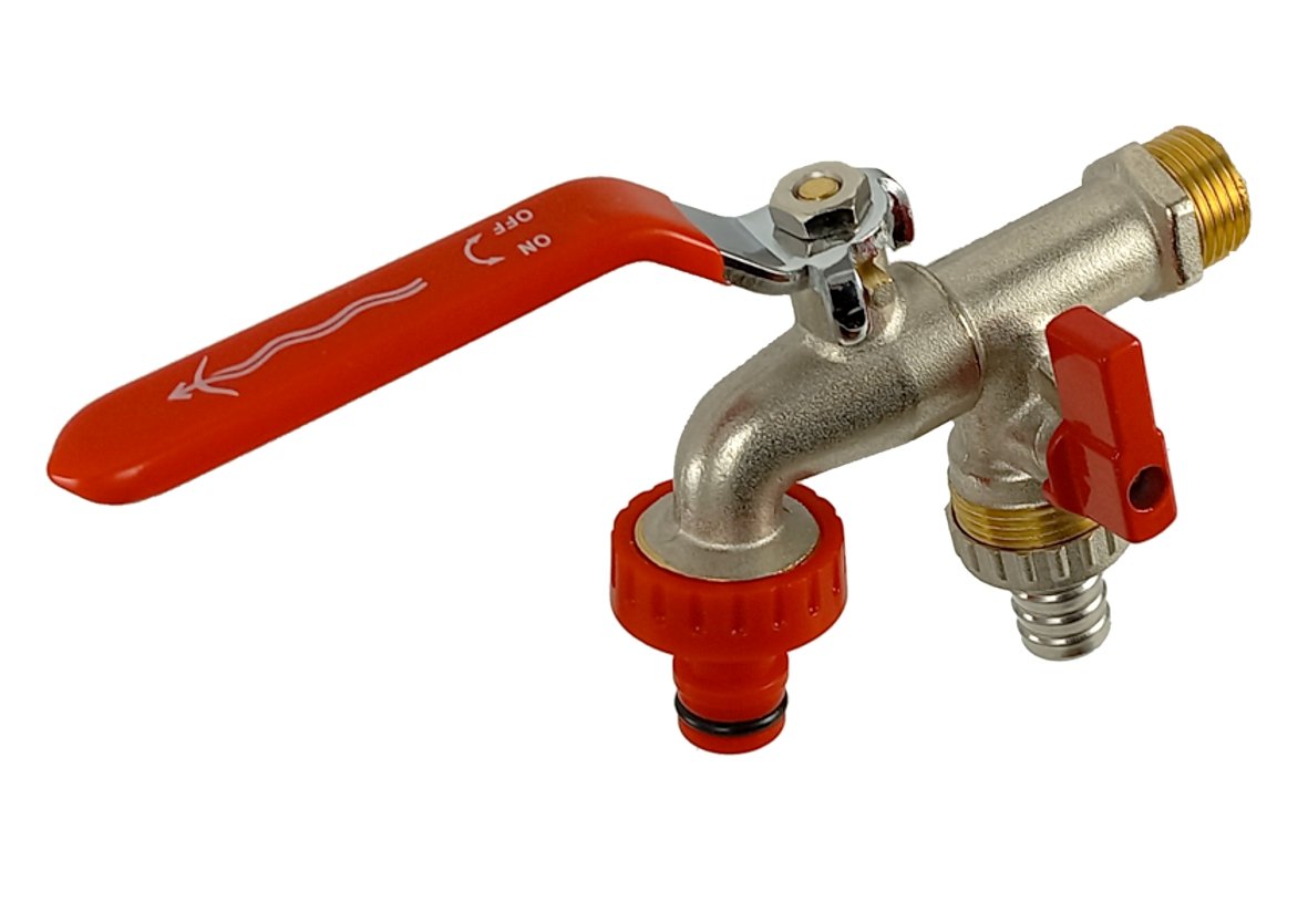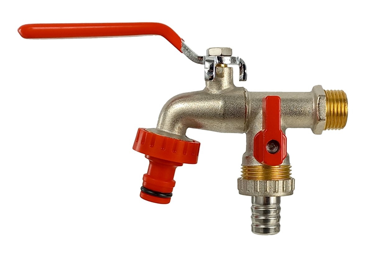 zahradní kulový kohout 1/2"x3/4"x3/4" s nástavcem na hadici, s připojením na hadici a rychlospojkou, Aquaristo